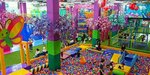 A large playground for children Actors play with children There are slides and trampolines The kitchen is not very good. There are few items that are available