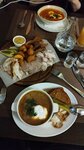This is not the first time in this cafe. Sunday lunchtime is empty, the group came in, looked at the menu and left. This is the first time I've seen this. Apparently, the prices are very high, there are no dishes cheaper than 14 rubles. An employee's little boy is running around the room with a terrible cough. Rhythmic instrumental music thunders to the monotonous brain-crushing sounds of heavy drums. It feels like I'm at an evening disco, not at lunchtime. I am glad that the kitchen did not disappoint.