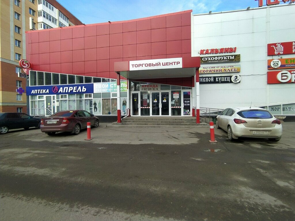 Небольшой торговый центр, где есть магазин продуктов Пятёрочка, Бристоль, ещё пару магазинов пива,аптека, товары для животных, магазин мелочей, выпечка и даже маленький магазин одежды.