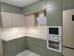 Пишу отзыв спустя полгода после установки кухни. Хочу выразить свою благодарность Александру и Вячеславу! Не пожалели, что обратились именно к ним. Александр уделил время по максимуму, предлагал варианты планировки, благодаря которым получилась кухня моей мечты, при условии маленьких габаритов самого помещения. Материал, из которого изготовлена кухня, превзошел мои ожидания, ни скола, ни царапинки. Зеленые фасады — это нечто, в хорошем смысле. ))) На них не остаются следы от пальцев, в солнечные дни они зеленые, при пасмурной погоде и искусственном освещении становятся ближе к серому цвету, что тоже очень удивило и порадовало (кухня-хамелеон). Сборщик Владимир тоже постарался на славу! Сборка, конечно, была долгая (5 дней), я такого не предвидела, но результат того стоил.