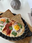 Очень красивое заведение, приятно позавтракать под спокойную музыку. Заказали шакшуку, кашу и тост с лососем. Каша показалась слишком сладкой, и расстроило, что она быда сварена из пятиминутки. Остальные позиции понравились, шакшука была подана как и надо, нареканий нет. Рекомендую данное заведение к посещению.