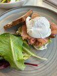 Вкусный паштет иЗ цесарки. Зерновой торт с авокадо и лососем отличный Брала сезонный салат с авокадо и клубникой-🥰🥰🥰🥰 авокадо ьыло такое мягкое, прямо как масло. Муж брал английский завтрак, почему-то в нем была холодная консервированная фасоль. Это единственное, что не понравилось, просили передать на кухню. Вкусный американо Кафе отличное, рекомендую смело!