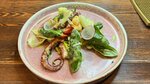 Это заведение,вегетарианские, там большое разнообразие приготовленной еды ,даже и незнала что есть сосиски без мяса ,овальные салаты,рис в виде плова.