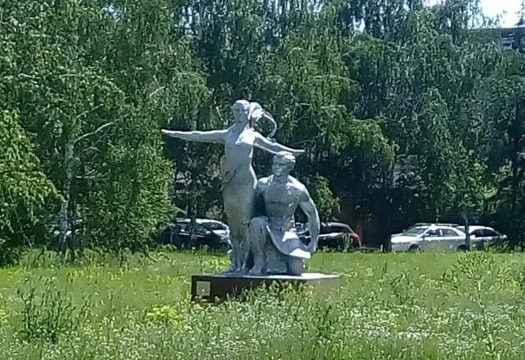 Небольшая скульптурная группа расположена в парке у моторостроительного предприятия, скульптура старая, состояние хорошее, прогуливаясь стоит осмотреть.