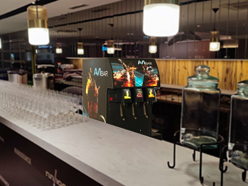 Большой выбор оборудования для розлива газводы. Можно сделать брендирование аппарата 👍🏼 Всё сами установили и настроили. Стильно смотрится и мало места занимает. Взяли avibar TOP на 4 напитка
