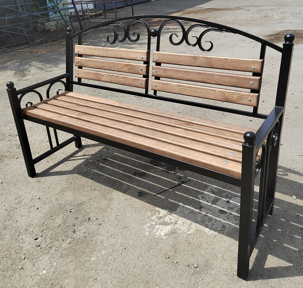 Скамейка без спинки металлическая выполнена из профильной трубы 50*50 мм и 40*20мм. Дерево хвойных пород обработано ,обжиг + лак.
