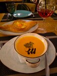 Милое семейное кафе, очень приятная атмосфера, здорово что музыкальное сопровождение соответствует кухне. Приятное ненавязчивое обслуживание, все весьма уютно и по-доброму. По еде: грибной крем-суп то, что надо, показалось что есть берые грибы в составе. Тыквенный суп тоже сам по себе плотный интенсивный по вкусу, но семена которые идут к супу прогорели, старые, это конечно испортило впечатление. Хачапури по-аджарски сочное, большое, с творожным характерным привкусом. Хачапури на углях - сухое, как доп к супу хорошо, как отдельное блюдо кушать было бы сложно. Напрягло наличие таракана в туалете.