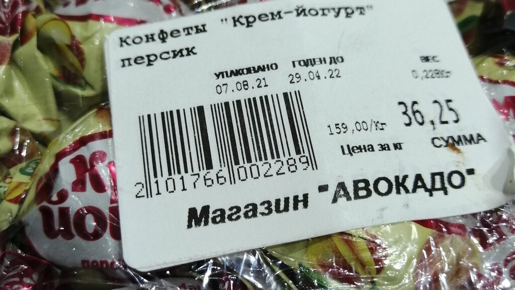 Купила сегодня конфеты в магазине "Авокадо" на ул. Пыринва, сели пить чай, были в шоке от того что чуть не сломали зубы об конфеты, которые знаю, что должны быть мягкие, вкус конфет застарелого жира, на конфета от старости белый налёт появился, начала смотреть дату годности и что я увидела, еле заметно было, что из под этикетки выглядывает ещё одна этикетка, отодрала аккуратно, а там дата годности ещё в Мае этого года вышла, а на верхней этикетке аж до 22 года