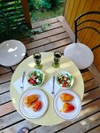 Чудесная база, шикарно отдохнули в тишине и покое). Брали дачу с одной спальней. Понравилась территория - красивейшие гортензии, за которыми бережно ухаживают. Пляж чистый, ухоженный. Много развлечений, даже боулинг есть. Большой выбор велосипедов разных размеров. По утрам поют птицы, к нашему домику дятел прилетал и стучал). Отдых не сильно дешевый, но прекрасный