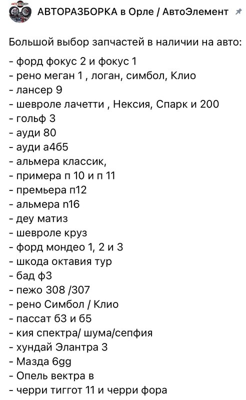 Отличный магазин автозапчастей в нашем городе Орел👍 Отдельная благодарность Алексею, по технической части все подробно подсказал и подобрал нужные запчасти. Рекомендую!