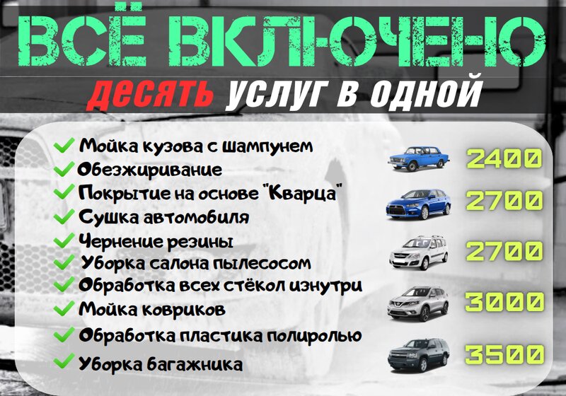Были сегодня на мойке . По цене Ниссан Кашкай люкс без багажника с обезжиркой 1950 руб. Цена отличная, помыли тоже на ура. Спасибо большое. Салон теперь приятно пахнет как будто машина новая. По времени мойки 1. Час 20 минут. Рекомендую. Есть зона ожидания, единственное когда много людей не всем хватает места