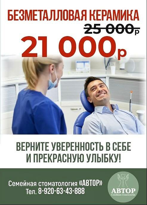 Новость в Семейной стоматологии АВТОР на улице Новосёлов Безметалловая керамика со скидкой 4000 рублей *Подробнее можно узнать по телефо...