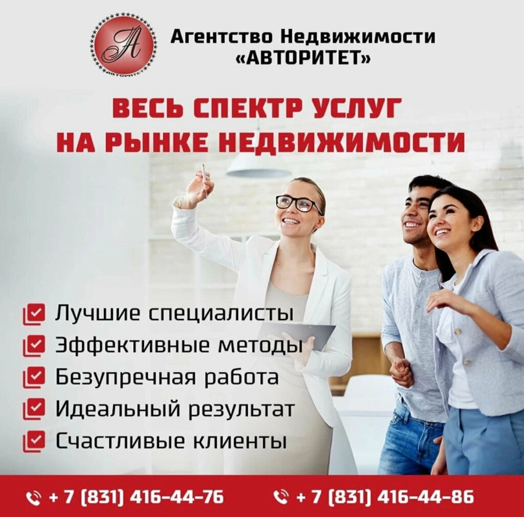 Лучшее агенство в городе-"Авторитет".Можете говорить и писать что угодно,но оно -лучшее.В октябре 2020 приехал впервые в Нижний для покупки квартиры.Всю сделку вела Анна Финагина-втретив меня в незнакомом городе,показав в течение нескольких дней 6-7 вариантов в разных районах города.Через два дня мы вышли на сделку,которая прошда быстро и четко.Профессинал самого высокого уровня,Анна помогла мне быстро купить то,что я действительно хотел.Тактичная,приветливая,работоспособная-без Ани ,этой удивительной женщины и прекрасного человека я ничего не смог бы сделать!