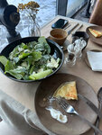 Интерьер 7/10 Слегка эклектичный интерьер, нечто среднее между традиционными татарскими мотивами и вайбом поздних девяностых. Посадка свободная, мебель удобная, панорамные окна с видом на набережную. Кухня 8/10 Зеленый салат заправлен чем-то вроде кумыса. Решение спорное, но ожидаемое в заведении татарской кухни. Бульон с элешем продается в чашке, как напиток и на вкус весьма неплох. Свежий элеш (или эчпочмак) хорошо сочетается с таким форматом подачи. Кыстыбый свежий, теплый и вкусный. Свежайшая пахлава прекрасно завершает трапезу. Неплох и выбор чаев, чтобы согреться после прогулки по набережной. Обслуживание 8/10 Вежливо, внимательно и даже с комплементом от кухни. Персонал профессионален и ненавязчив. Итог: Прекрасное заведение для знакомства с татарской кухней или просто место, где можно согреться и перекусить.