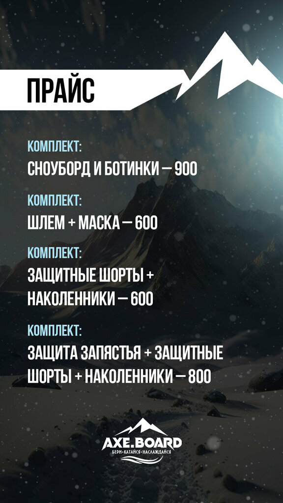 Прокат сноубордов в Ставрополе. КОМПЛЕКТ: сноуборд и ботинки - 900р. ОТДЕЛЬНО: Борд - 700р. Ботинки - 500р. Цена указана за сутки. Бери. Катайся. Наслаждайся.