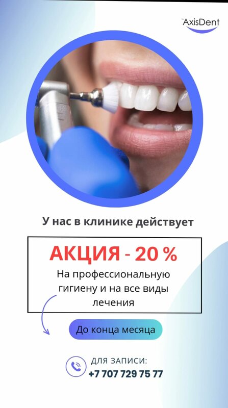 💙 Акция в Axis Dent! Забота о вашей улыбке стала ещё доступнее 🦷 Скидка 20% — на профессиональную чистку — на все виды лечения 📍 Мы работ...