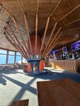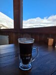 Природа 5 Сервис 3-Были 23 декабря 2025, за несколько дней до начала сезона. И ничего не готово к сезону! Официант, она же повар была одна в заведении. На столах крошки. Оплаты картой нет, сдачи наличными нет, перевод кой-какой вроде бы работал. Людей мало, 2-3 компании. При мне эти же люди не захотели ждать приготовления чебуреков и хычинов, потому что долго и просили вернуть деньги. У меня был кофе и хычин с брынзой и зеленью. В этом месте хычин - тонкий, как блинчик лист теста с соленым сыром и зеленью. Просто перекус. В интерьере пластинки, но никакой музыки не было вообще-вообще. Все спасла красота окружающих гор. А так, Если окажусь ещё раз на Чегет2, перекус буду брать с собой.