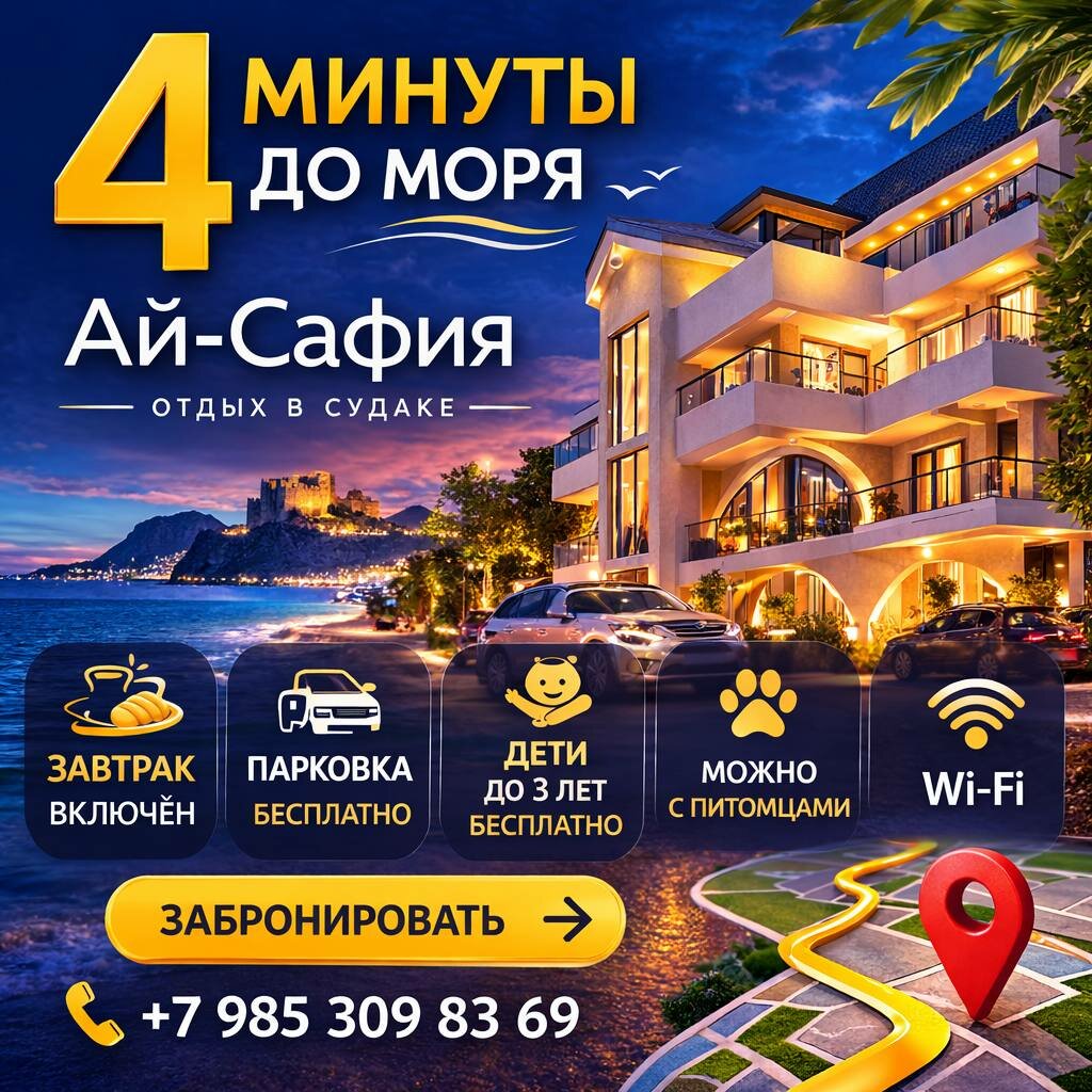 Иногда достаточно всего двух дней у моря, чтобы почувствовать настоящий отдых. Гостиница «Ай-Сафия» находится всего в нескольких минутах от...