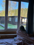Чистые, уютные, очень компактные внутри, домики со всем необходимым. Территория и парковка неосвещены. Пойти погулять - только вокруг домиков. На каждой веранде ежедневно семьи пьют чай и кое что покрепче. Шторы изнутри как будто плотные, но с улицы на просвет вы как на ладони. Нет ни единой точки где можно купить что то поесть кроме местного столовой-ресторана. Ценник там своеобразный, для тех кто готов за яйцо платить 40 рублей и за сухую гречку 200р, а за сосиску 150, стакан сока 100. Ну кто в магазин ходит тот понимает что стоимость сильно завышена за простецкую столовскую еду. В домиках нет ни чайника, ни кипятильника, но есть хороший холодильник. Заехав в четвёртом вы не можете сходить не спотыкаясь о свои сумки, вам некуда будет положить вещи, нет стеллажа или шкафа с полками, есть штанга с плечиками и все. С розетками тоже беда. Мало их. Интернет ловит только у окна, крыша или каркас домика глушат вайфай отлично. Повезет если у вас будет печка внутри и холодно снаружи, за 300 рублей вам ее растопят только их дровами при этом добрых часа 1.5 в домике даже в трусах жарко так как буржуйка рассчитана на площадь в 4 раза большую. Кровать двуспальная классная можно перпендикулярно лежать вдвоем и быть укрытыми.