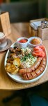Отличное кафе. Здесь подают вкусные завтраки, а на обед - отличный борщ. Персонал вежливый и внимательный. Есть настольные игры (не все полные, но этого было достаточно, чтобы занять детей на период ожидания).
