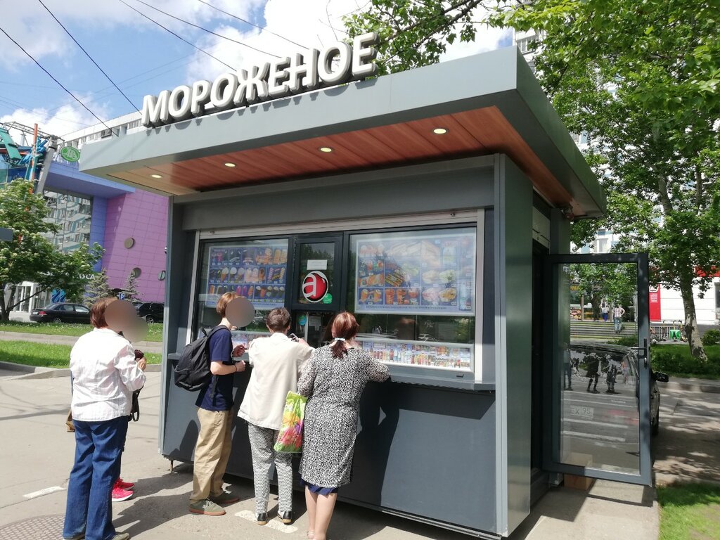 Обычная палатка с мороженым)) всегда с ребёнком покупаем там мороженое когда идём гулять в парк Строгино, который через дорогу) летом эта палатка испытывает аншлаг) все отдыхающие, которых не устраивают космические цены в самом парке - бегут сюда за мороженым и напитками) мне кажется летом модно сразу 3 таких ставить, а то очереди большие в сезон))