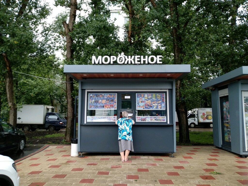 Хороший киоск. Можно выбрать несколько видов мороженого. Ничего необычного здесь нет. Поиветливая продавщица и много- много вкусной белой массы с разными наименованиями!