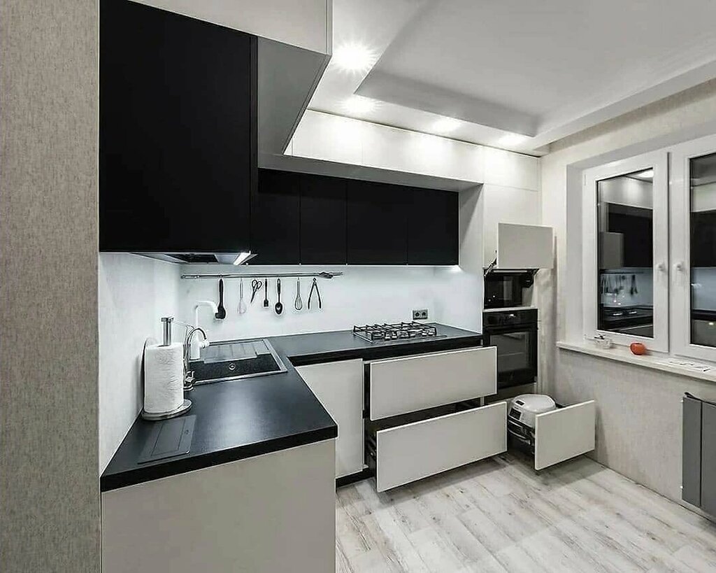 Кухня МДФ Эмаль угловая 3000*2400 мм •Корпус лдсп Эггер •Фасады МДФ Эмаль •Столешница влагостойкая пластик 38мм •Фурнитура Blum