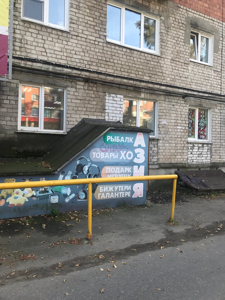 Магазинчик в подвале жилого дома. Ассортимент - разная китайская мелочевка а-ля киоски на московском вокзале 10-ти летней давности. Ножечки, зажигалки, батарейки, брелки-фонарики, чехлы для нокиа3310. Сотни ненужных вещей соответствующего качества. Зайти поразглядывать, если нужно убить время - самое то. По-моему там никто и никогда ничего не покупает, но магазинчик прекрасно функционирует уже минимум лет 5. Конечно возможно они ночами варят голубой мет, с этого и живут. Хотя вряд-ли, я сам живу в этом доме, запаха не замечал...