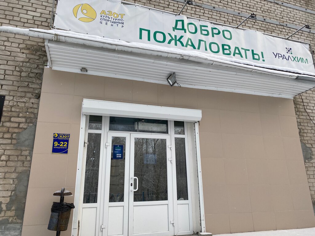 Много лет занималась в спорткомплексе Азот. Сейчас мой внука посещает здесь секцию баскетбола. Современный спорткомплекс. Есть тренажёрный зал. Спортзал для занятий баскетболом, волейболом. Есть секция гимнастики, бокса. Работники завода вместе с детьми с удовольствием посещают спорткомплекс.