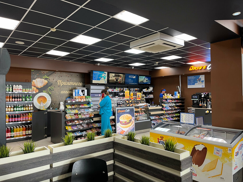 Очередей почти нет. Сначала заправляешься, потом платишь. Есть заправщики. Есть кафе, туалет. Рядом шиномонтаж и сход-развал.