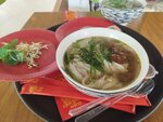 Были с подругой, взяли фо бо и паровую булочку с кокосовой начинкой, к фо бо подали три соуса, можно добавить один, можно все смешать, еще лайм, мяту и ростки. Все было очень вкусно) Бонусом продавец донес весь заказ до нашего столика, хотя в целом на фуд-корте самообслуживание)