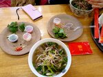 Вкусный суп Фо бо, огромная порция, наедаешься очень хорошо, больше ничего и не надо. С ним дают специи, можно самому выбирать остроту и компоненты которые хочешь положить.