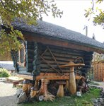 Погуляли по резиденции Бабы Яги. Объем работы, произведенной создателем впечатляет! Все постройки созданы своими руками! Очень много атрибутов в сказочной тематике: в избушке ступа с метлой, витражи на окнах с котом, самовары, сани с сеном, резные фигуры из дерева и очень много всего прочего, масштабы поражают, и аромат дерева повсюду, все так аккуратно, чисто. Можно погулять без сопровождения, заглянуть в избушку, подняться на мельницу… А вот на экскурсии надо записываться заранее, т.к. группы ограничены по количеству участников. С детьми однозначно стоит посетить, да и взрослым там будет интересно.
