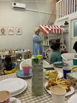 Был день рождения племянницы, очень приятная и уютная атмосфера, админ о всем позаботилась, учитывала количества гостей и помолола нам, посуда, приборы все есть. Интерьер очень красивый, игровая зона для детей, игрушки в их распоряжением. Мне понравилось 😻