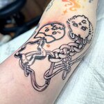 Долго искала мастера , чей стиль мне будет близок. Нашла Дашу Гриб , и вот мы уже делаем вторую работу на моей руке) У Даши свой узнавемый графический стиль, это не просто рисунки , а целая философия! Так же супер заботливый подход к клиентам. 🖤🖤 За мрачной графикой теперь только этой волшебнице ☺️