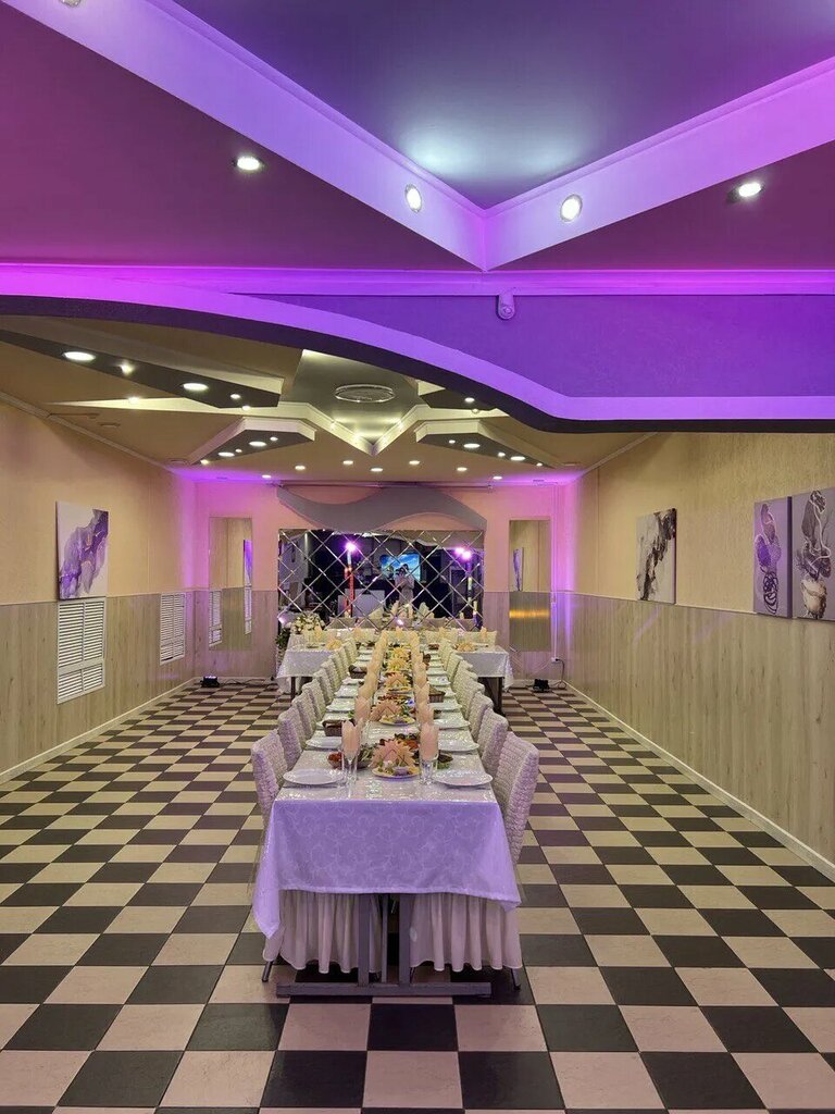 Отмечали юбилей бабушки, 70 лет. Восхищение не описать словами! Со входа, встретили вежливые сотрудники, очень хорошая и быстрая работа официанта! Кухня просто высший класс! Большой выбор меню, мясных блюд, салатов. Прекрасная возможность воспользоваться аудиотехникой в зале! Удобно спланированный интерьер, удобная танцевальная зона. Обязательно порекомендую провести ваш праздник в этом заведении!