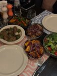 Finally found a place that feels like a real Georgian home! The atmosphere is so welcoming, and the food is just incredible. We ordered a variety of dishes, and everything was spot on: Pork and Chicken Mshvadi: Perfectly grilled, juicy, and full of flavor. Crispy Oyster Mushrooms: My personal favorite! They were perfectly browned and had a great texture. Ojahkuri with vegetables: A classic done right—hearty and delicious. Chicken Salad: Fresh and a great light balance to the meal. And of course, the wine—it’s exceptional. You can tell they take pride in their selection; it perfectly complements the rich flavors of the food. Highly recommend!