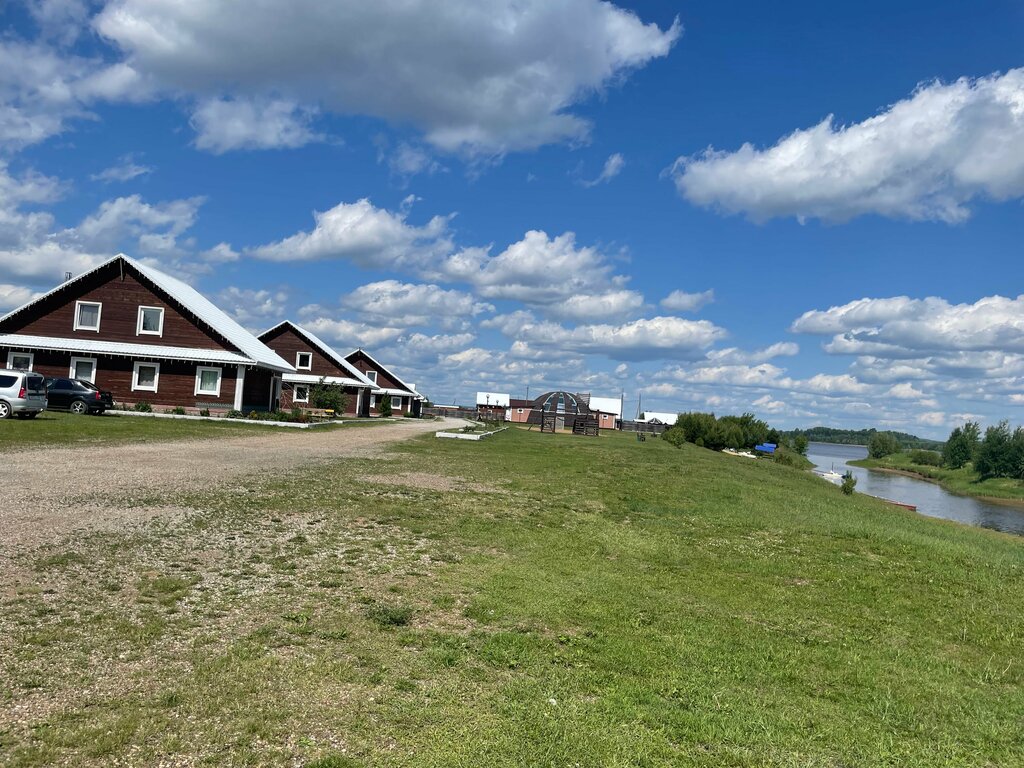Отличное место для отдыха с друзьями! Большая территория. Красивые виды на реку. Очень уютные большие домики. Баня жаркая! В бассейн не заглядывал. Очень чисто везде. С нашим домиком рядом росли яблони, все обсыпанные большими плодами! Так же росла облепиха и море цветов! Домиков много, все были заняты большими компаниями. Но! Абсолютно ни кто не мешал нам, как бы это не показалось странным. Наверное из-за большой, открытой территории. Много красивым мест для фото. Отдых в БаГамах рекомендую!!!