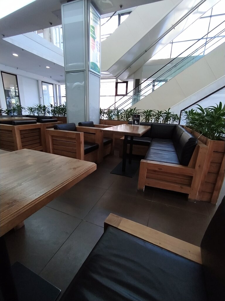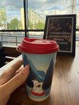 Вполне приятная кофейня, чтобы посидеть в ожидании кого-нибудь или чего-нибудь, либо, чтобы ненадолго встретиться с кем-нибудь. Небольшая. С видом на проспект Испытателей. Очень вежливые сотрудники. Вкусный кофе. Не дёшево, но не космические цены. Изредка заходим в ожидании ребёнка с занятий.