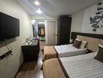 Была в отеле и ужинала в ресторане Багратион. Заказала пасту карбонара - на 3 балла - макароны разварены, когда тянешь вилкой рвутся, бекон можно было хотя бы обжарить перед тем как бахнуть в макарошки, из за этого кислый запах у блюда. И в пасте просто какая то тонна масла. Ни грамма пармезана. Подача никакая. При том, что это блюдо от шеф повара - оно еле тянет на тройку, так ещё в нём нет никакой изюминки, что бы называться " от шеф-повара". Я знаю, что по одному блюду сложно судить о всём месте. Но пока, рестораном это сложно назвать. Хотя, нет, цена довольно ресторанная. Очень жаль, потому что отель понравился.