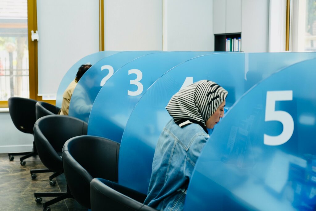 A well-functioning central branch of Bakai Bank. At the entrance, the girls are greeted and immediately helped with the actions, and during the stay, too. The electronic queue goes fast, they tell you which window to approach in Russian, there are enough sofas, there is a coffee machine and a toilet. I issued an Elkart card in SOM and Visa gold in $, everything is fast, a virtual card in a mobile application, plastic during the day with urgent registration. There are young employees who don't know everything, so it's better to prepare for the visit in order to know exactly what you need. Support is fast in the mobile app.