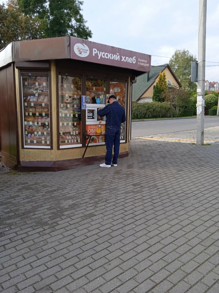 Хорошая торговая точка с огромным ассортиментом Калининградского хлебокомбината, цены средние, всегда свежий хлеб, кондитерские изделия, сдоба. Есть постоянные покупатели. Удобная парковка, обслуживание хорошее. Однако в жаркую погоду кондитерские изделия стоят на солнцепеке, не помешал бы навес, защищающий от прямых солнечных лучей.