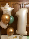 Написала что хочу в ватсап и забрала свою композицию через несколько часов. Учли все мои пожелания, в том числе по цвету шаров/наполнению связки. Шары цифры стоят уже 4 недели. Подарили один шарик) рекомендую!!