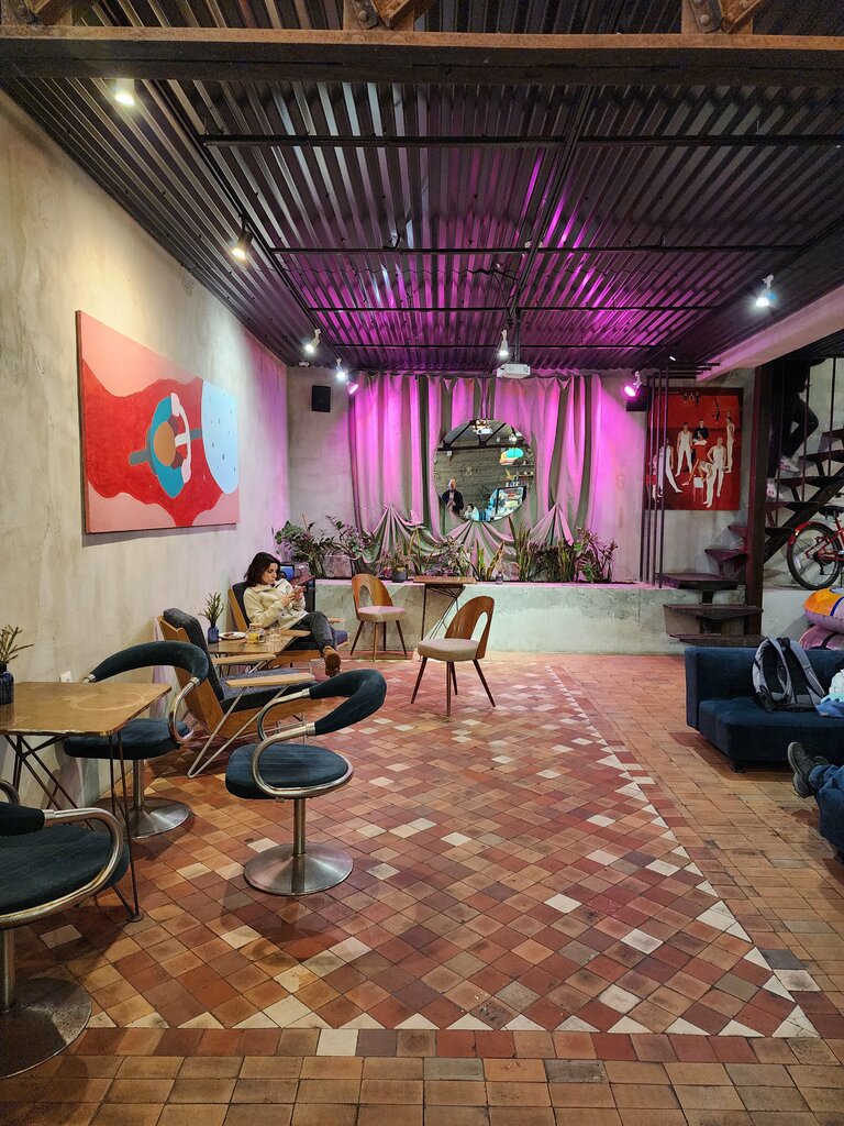 Очень уютная и тихая локация. Понравились высокие потолки, обилие живых растений и мягкая фоновая музыка. Здесь легко расслабиться и поболтать без лишнего шума.