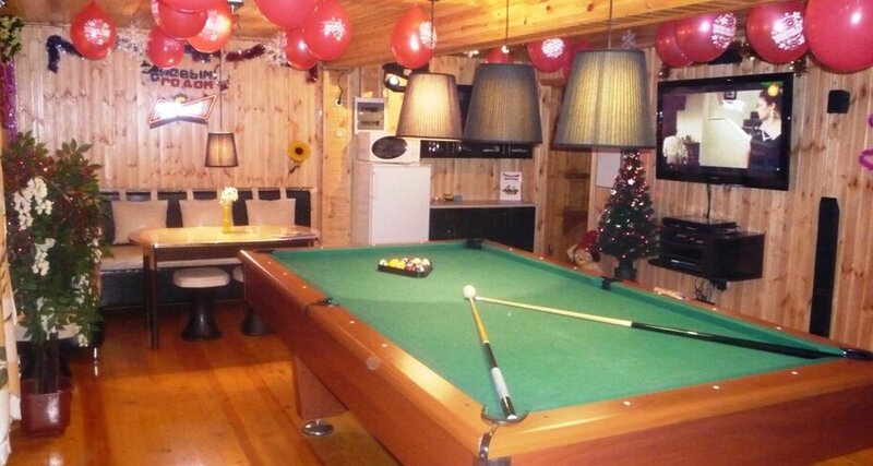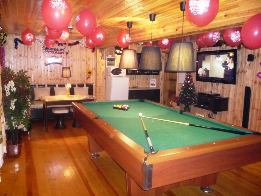 Начну с минусов. Парная на троечку,притока воздуха нет,дышать нечем. Есть бильярд это плюс.Но! Шары от времени стали квадратные. Вытяжки нет или не работает. Из плюсов. Есть джакузи (не заказывали). Можно приобрести дополнительно веники,полотенца,простони. В холодильнике есть напитки(доп). Есть комната отдыха. На улице есть мангал и дополнительные столики. Есть детская горка,тоже плюс. Отдохнуть,выпить можно. Париться не рекомендую,голова болеть будет точно.