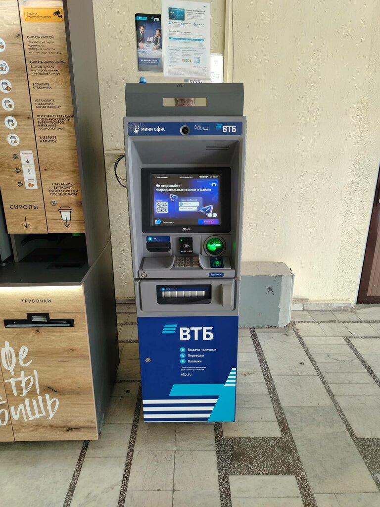 Стандартный старый банкомат, можно снять наличные, но не положить на карту. ВХОД НАХОДИТЬСЯ СО СТОРОНЫ УЛИЦЫ ВОЛГОГРАДСКОЙ!