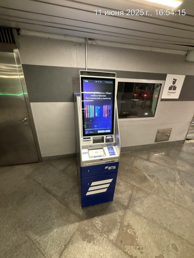 Банкомат стоит за турникетами (как и писали остальные), т.е. только для "пользователей метро" или платите "комиссию" на вход в метро (наверное у ВТБ сговор с метрополитеном?). Также автомат старого образца и не принимает новых купюр (которые скоро почти год будут в ходу).