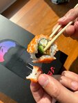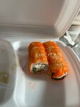 Рис кашеобразный в жаренных роллах, кусок в рот еле засунешь. В роллах с тобикой вообще не понятный рис, как будто вчерашний рис смешали с сегодняшним. Кляр вкусный, рис сладкий, но каша. Есть невозможно