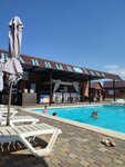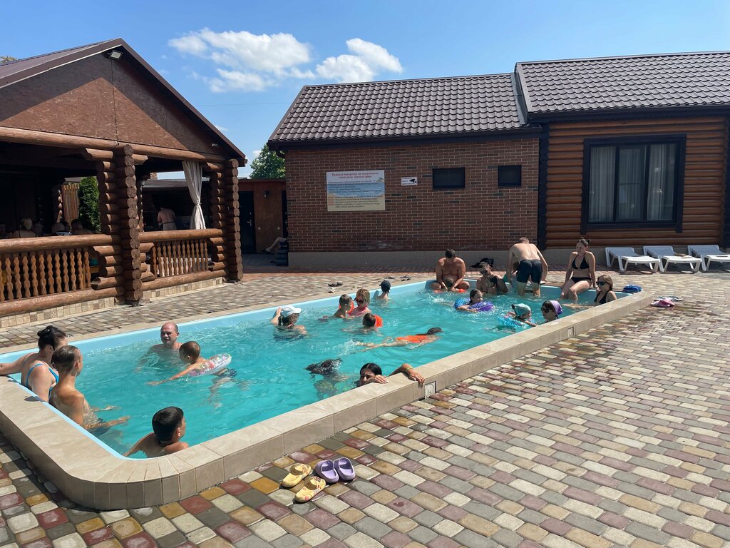 Приятно был удивлен увидев под Азовом такое прекрасное место . Как-то скептически был настроен и всегда обходил стороной это место , а оказалось напрасно ! Очень Большая ухоженная территория с навесами , беседками ( и большие есть на большую компанию 15-20 человек и маленькие ) . Есть домики , где можно и остаться с ночёвкой . Один большой бассейн , один средний подогреваемый , а также детский бассейн с аквазоной и горками ! На территории все оборудовано ( мангальные зоны , с рукомойниками и мылом ) , в беседке холодильник , розетки , свет , всё есть ! На территории красивая растительность , муляжи пушек и прочие прикалюхи . Есть бар , можно заказать и шашлык и картошку и пиццу на вынос , цены хорошие ! Платишь за вход ( тоже что-то очень не дорого ) , надевают вам браслет и пользуешься всем этим чудом . Так что если нужно отметить какое то мероприятие или просто посидеть с компанией , то это место точно заслуживает вашего внимания ! Однозначно рекомендую !
