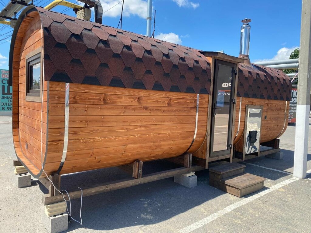 Баня бочка 2.2*6м, с парной, комнатой отдыха и душевой